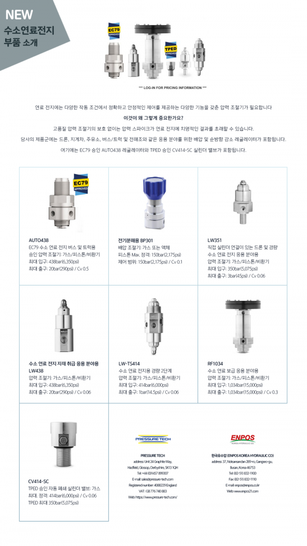Pressure tech 수소연료전지 부품 소개 페이지 정보 글쓴이 ENPOS 작성일23-04-17 10:46 조회2,809 댓글0 관련링크 Prev Next 목록 본문 해외업체 Pressure tech의 수소연료전지 부품 소개 이미지입니다. Prev Next 목록