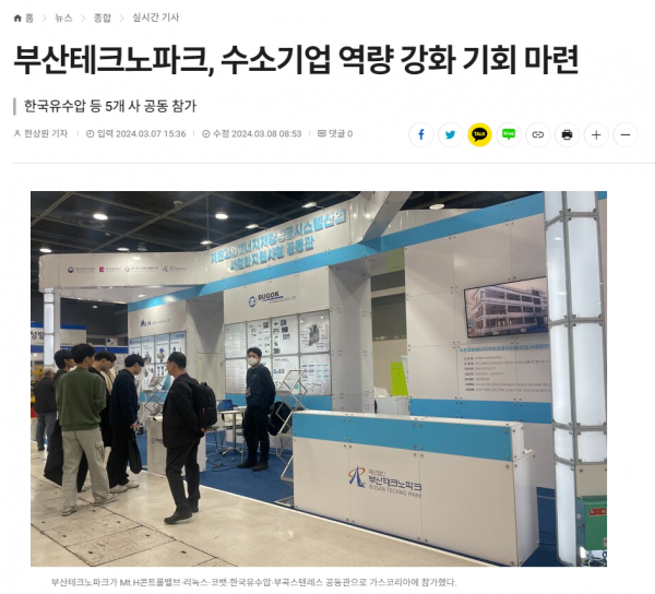 수소뉴스 - 부산테크노파크, 수소기업 역량 강화 기회 마련 한국유수압 등 5개 사 공동 참가
