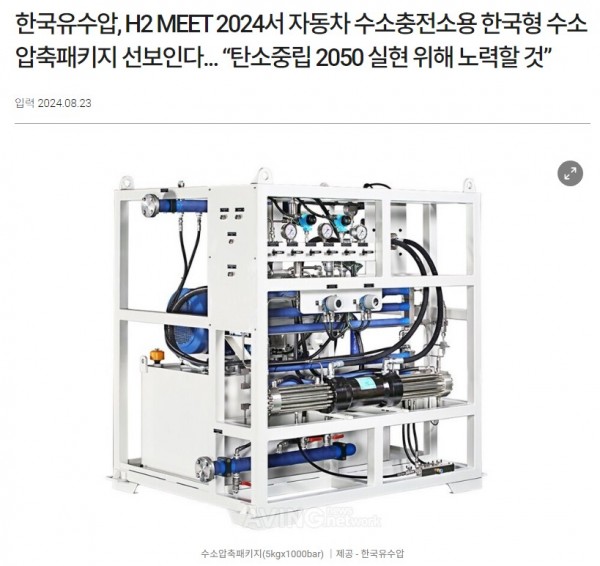 기사소개 (한국유수압, H2 MEET 2024서 자동차 수소충전소용 한국형 수소압축패키지 선보인다... “탄소중립 2050 실…